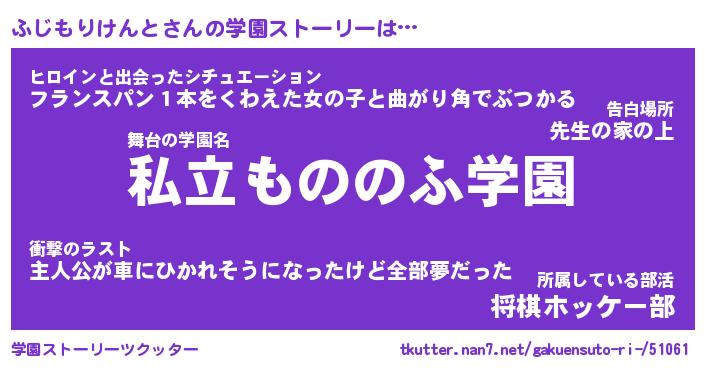 | 女子向けラノベタイトル風あだ名 | 『(仮)ふじもりけんとのやんごとなき事情』 |