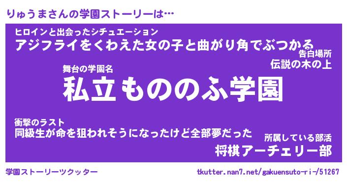 | ヒーロー風カッコイイあだ名 | 『スーパーリュウマ』『天弓騎士リュ』 |