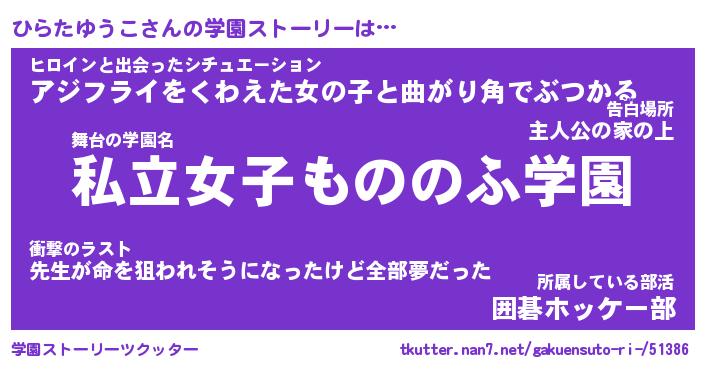 | 女子向けラノベタイトル風あだ名 | 『誰かこのひらたゆうこを説明してください! ~契約から始まるウェディング~』 |