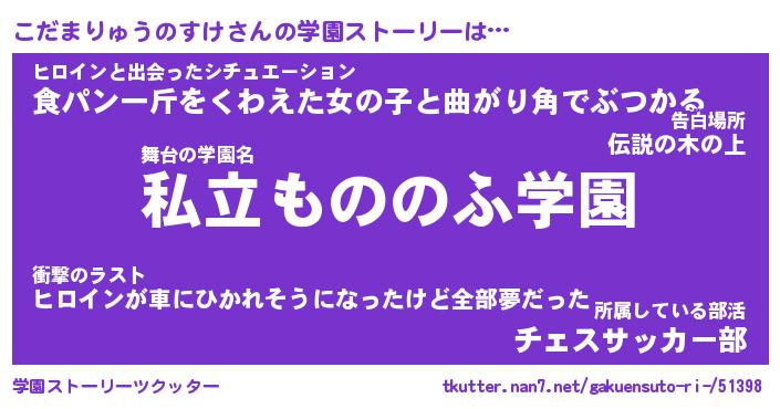 | 女子向けラノベタイトル風あだ名 | 『こだまりゅうのすけ姫と円卓の騎士』 |