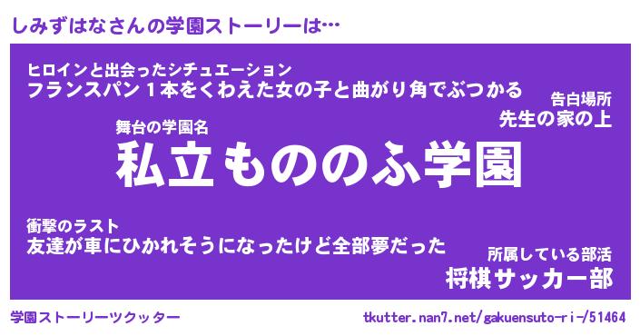 | 男性向けラノベタイトル風あだ名 | 『しみずはなの憂鬱』 |