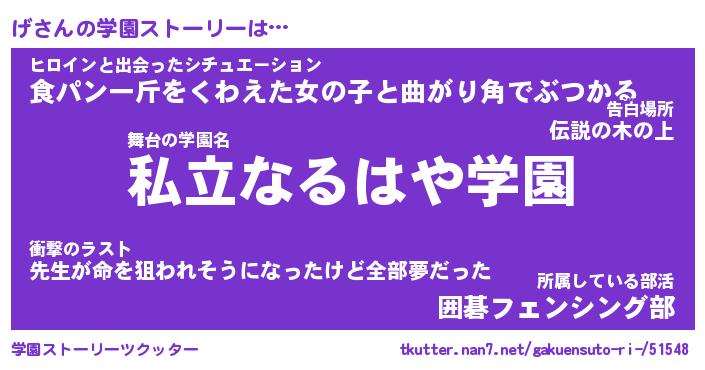 | 男性向けラノベタイトル風あだ名 | 『げの憂鬱』『ノーゲーム・ノーゲ』 |