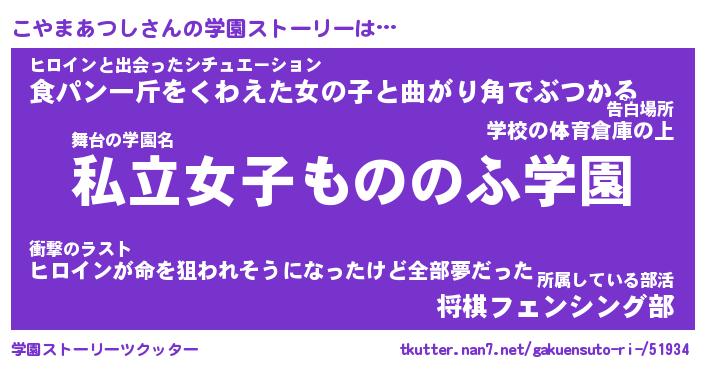 | 女子向けラノベタイトル風あだ名 | 『こやまあつし姫と円卓の騎士』 |