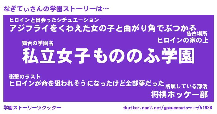 | 女子向けラノベタイトル風あだ名 | 『なぎてぃ姫と円卓の騎士』 |