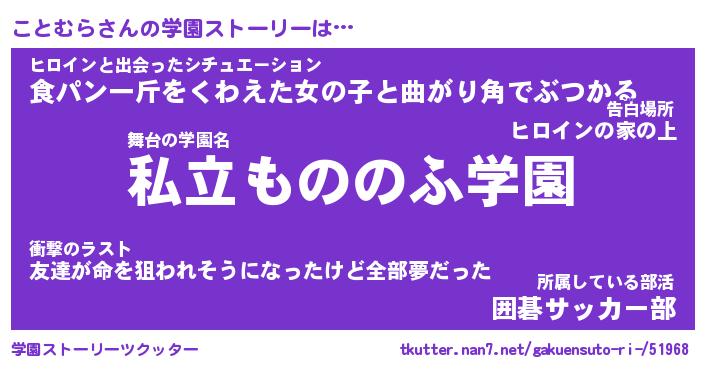 | 男性向けラノベタイトル風あだ名 | 『ことむらの憂鬱』 |