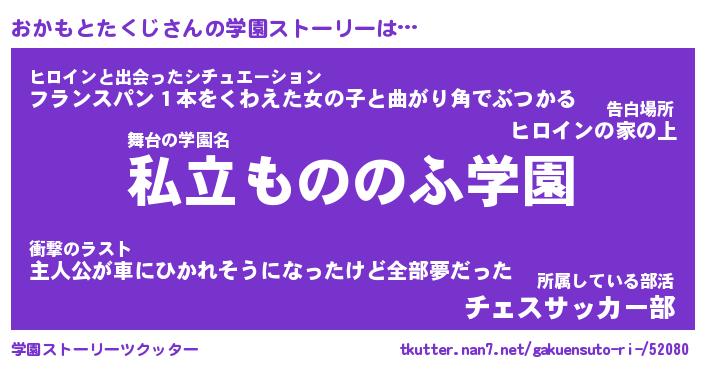 | 男性向けラノベタイトル風あだ名 | 『おかもとたくじの憂鬱』 |