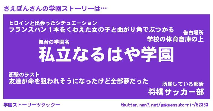 | 男性向けラノベタイトル風あだ名 | 『さえぽんの憂鬱』 |