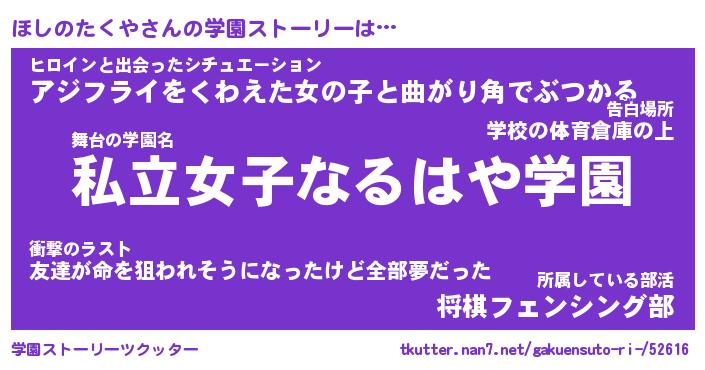 | 伝説のあだ名 | 『封印されしスナイパーほしのたくや』 |