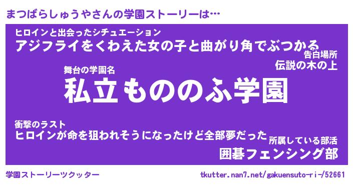 | 男性向けラノベタイトル風あだ名 | 『まつばらしゅうやの憂鬱』 |
