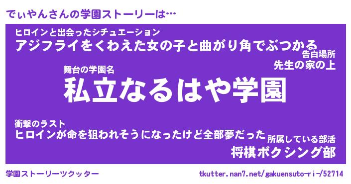 | 男性向けラノベタイトル風あだ名 | 『でぃやんの憂鬱』 |