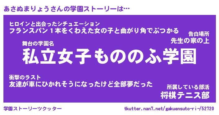 | 男性向けラノベタイトル風あだ名 | 『アサヌマリョウアートオンライン』 |