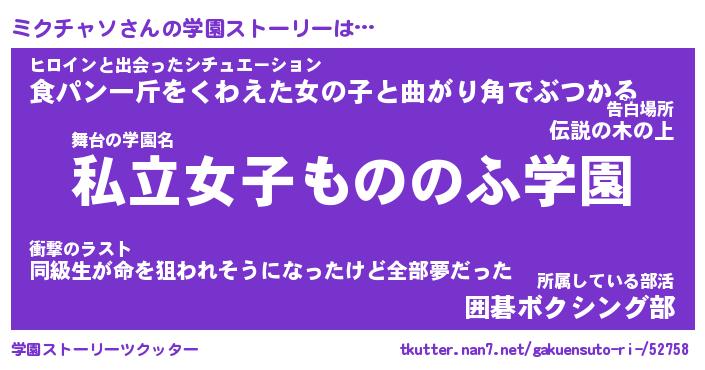 | ファンタジー風あだ名 | 『ミクフェル』『エターナルミクチャソー』 |