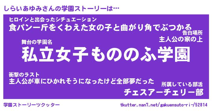 | 女子向けラノベタイトル風あだ名 | 『誰かこのしらいあゆみを説明してください! ~契約から始まるウェディング~』 |