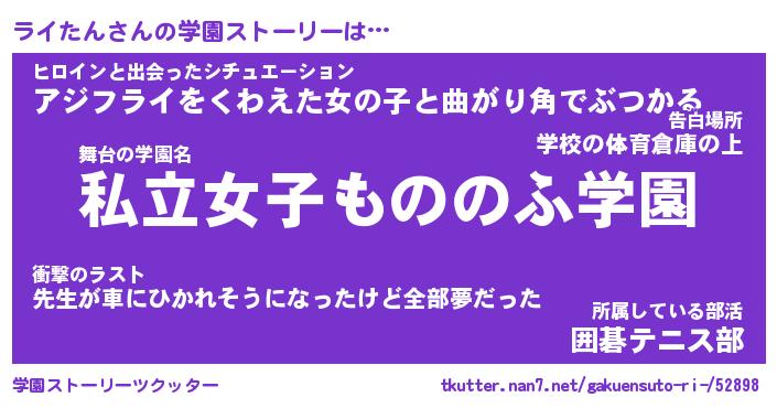 | 意味不明あだ名 | 『ペロリンライたん』『永久保存ライたん』 |