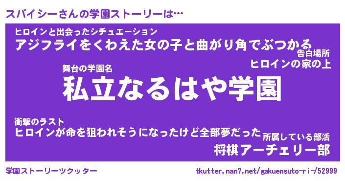 | 男性向けラノベタイトル風あだ名 | 『スパイシーの憂鬱』 |