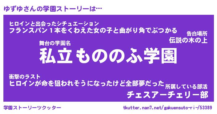 | 男性向けラノベタイトル風あだ名 | 『ゆずゆの憂鬱』 |