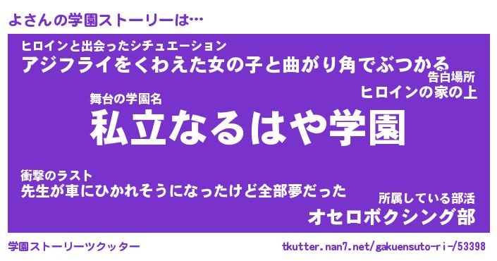 | 告白場所 先生の家の上 …「ふぃぎゅこ」 | 2月17日 06:24 |