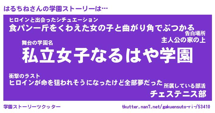 | 女子向けラノベタイトル風あだ名 | 『はるちね姫と円卓の騎士』 |