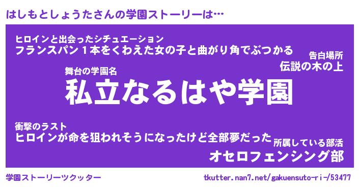 | 男性向けラノベタイトル風あだ名 | 『はしもとしょうたの憂鬱』 |