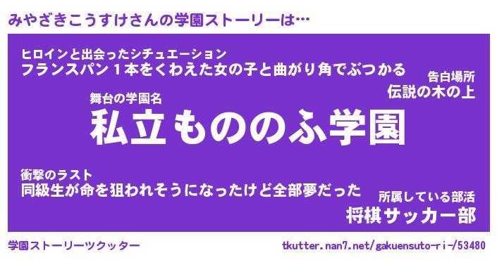 | 男性向けラノベタイトル風あだ名 | 『みやざきこうすけの憂鬱』 |