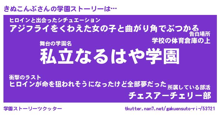 | 女子向けラノベタイトル風あだ名 | 『きぬこんぶ姫と円卓の騎士』 |