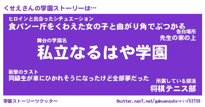 | 告白場所 先生の家の上 …「ふぃぎゅこ」 | 2月17日 06:24 |