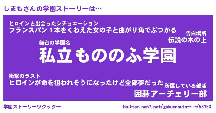 | 女子向けラノベタイトル風あだ名 | 『(仮)しまものやんごとなき事情』 |