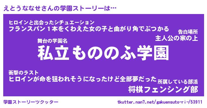 | 伝説のあだ名 | 『伝説の竜騎士えとうななせ』 |