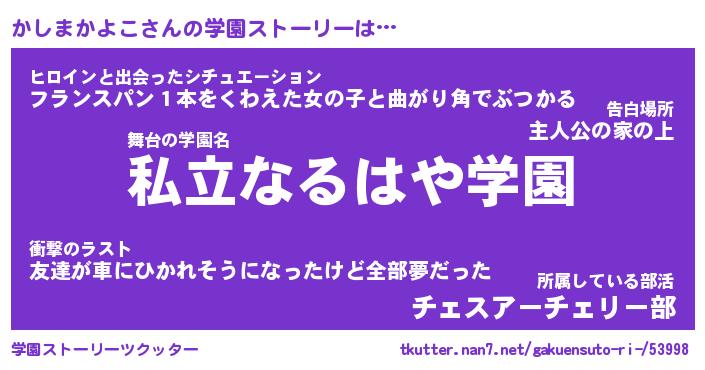 | 告白場所 先生の家の上 …「ふぃぎゅこ」 | 2月17日 06:24 |
