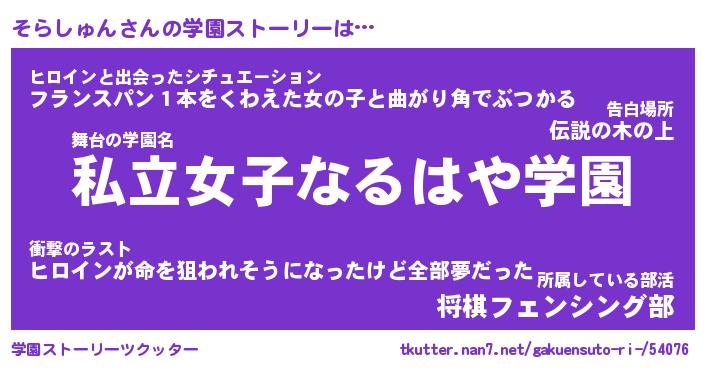 | ファンタジー風あだ名 | 『ソラフェル』『エターナルソラシュンー』 |
