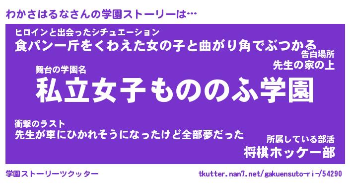 | 女子向けラノベタイトル風あだ名 | 『誰かこのわかさはるなを説明してください! ~契約から始まるウェディング~』 |