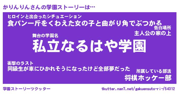 | 男性向けラノベタイトル風あだ名 | 『かりんりんの憂鬱』 |