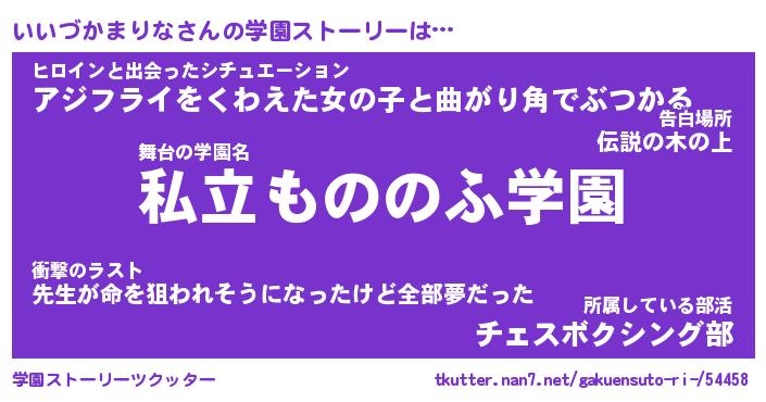 | 女子向けラノベタイトル風あだ名 | 『(仮)いいづかまりなのやんごとなき事情』 |