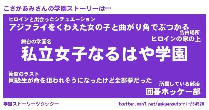 | 伝説のあだ名 | 『封印されしスナイパーこさかあみ』 |