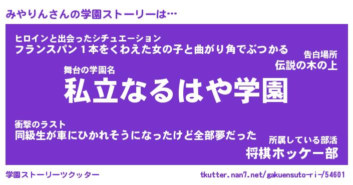 | 男性向けラノベタイトル風あだ名 | 『みやりんの憂鬱』 |