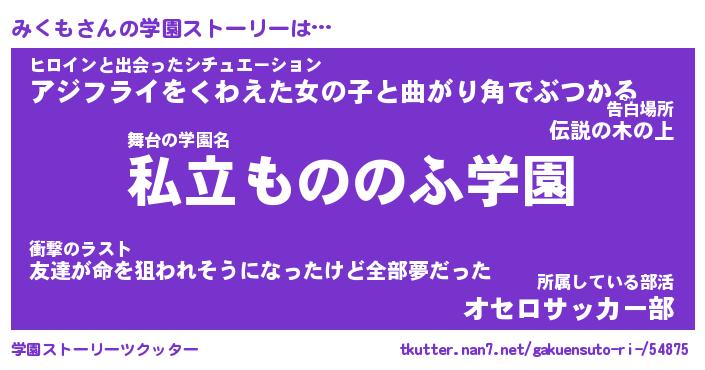 | 女子向けラノベタイトル風あだ名 | 『(仮)みくものやんごとなき事情』 |