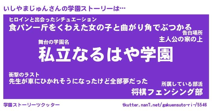| 女子向けラノベタイトル風あだ名 | 『(仮)いしやまじゅんのやんごとなき事情』 |