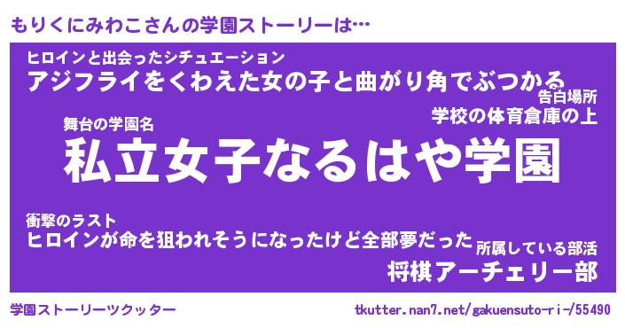 | 女子向けラノベタイトル風あだ名 | 『誰かこのもりくにみわこを説明してください! ~契約から始まるウェディング~』 |