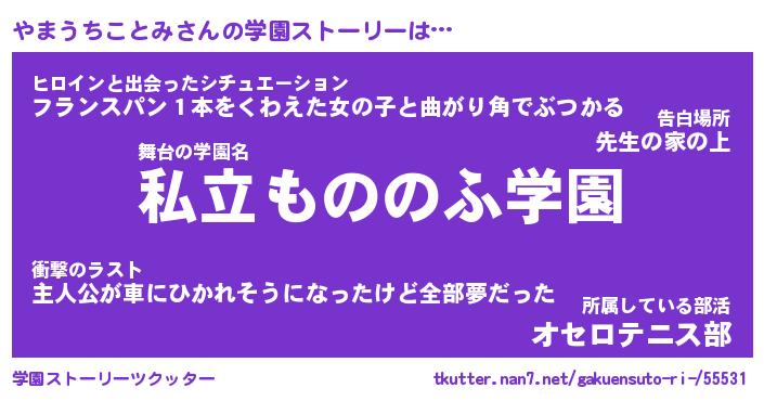 | 女子向けラノベタイトル風あだ名 | 『(仮)やまうちことみのやんごとなき事情』 |