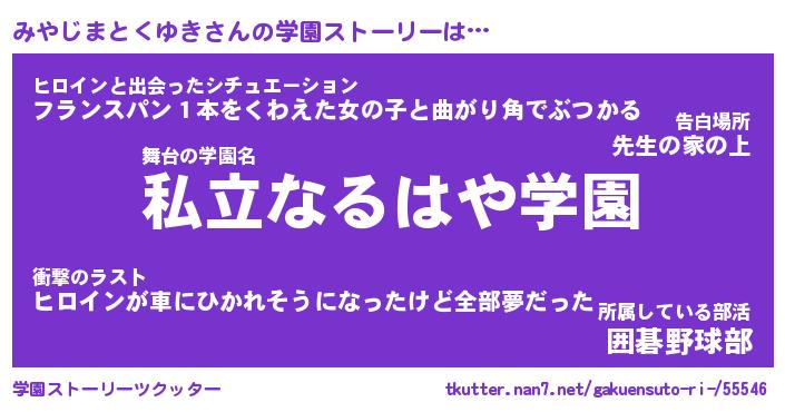 | 女子向けラノベタイトル風あだ名 | 『(仮)みやじまとくゆきのやんごとなき事情』 |