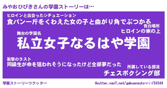 | ヒーロー風カッコイイあだ名 | 『スーパーミヤオヒビキ』『銀牙騎士ミヤ』 |