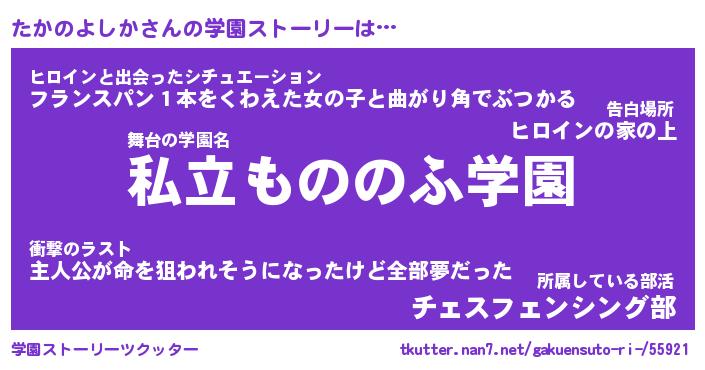 | 女子向けラノベタイトル風あだ名 | 『たかのよしか姫と円卓の騎士』 |