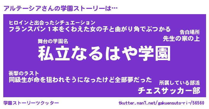| 男性向けラノベタイトル風あだ名 | 『アルテーシアの憂鬱』 |