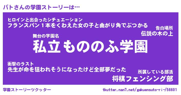 | 男性向けラノベタイトル風あだ名 | 『バトの憂鬱』 |