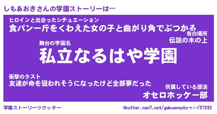 | 男性向けラノベタイトル風あだ名 | 『しもあおきの憂鬱』 |