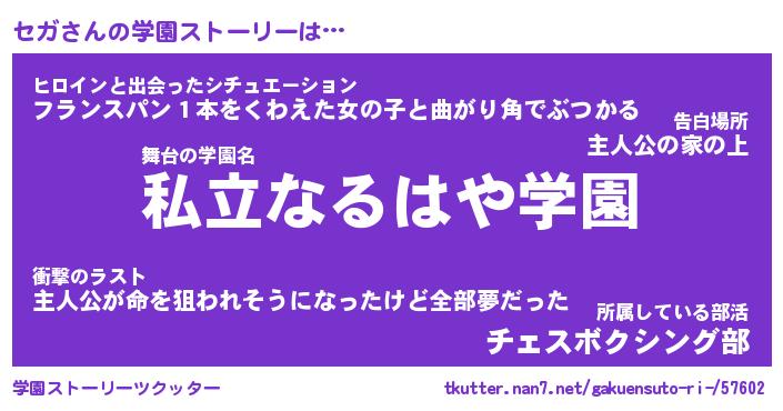 | 男性向けラノベタイトル風あだ名 | 『セガの憂鬱』『ノーゲーム・ノーセガ』 |