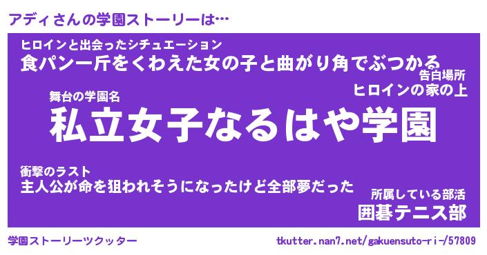 | 女子向けラノベタイトル風あだ名 | 『アディ姫と円卓の騎士』『アディ恋絵巻』 |