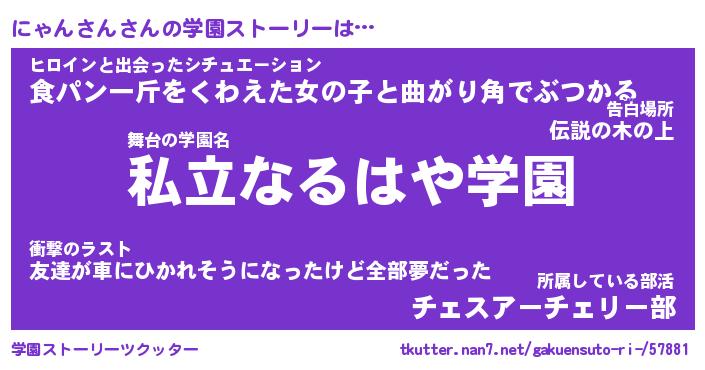 | 男性向けラノベタイトル風あだ名 | 『にゃんさんの憂鬱』 |