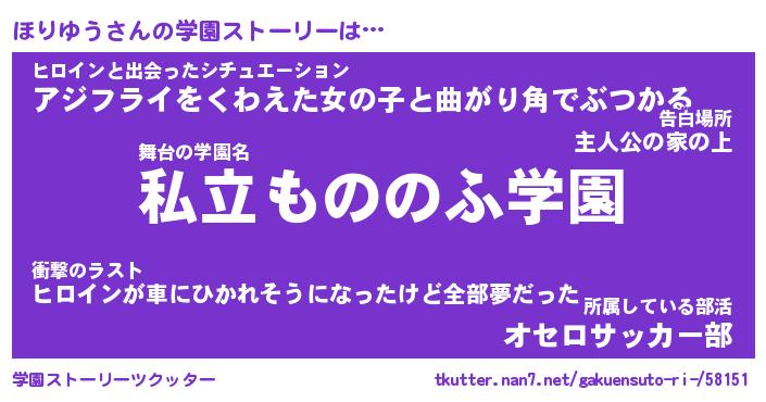 | 男性向けラノベタイトル風あだ名 | 『ほりゆうの憂鬱』 |