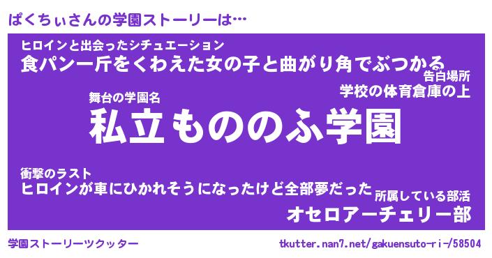 | 女子向けラノベタイトル風あだ名 | 『(仮)ぱくちぃのやんごとなき事情』 |